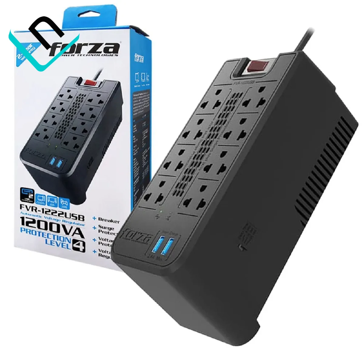 ESTABILIZADOR FORZA FZ-FVR-1222USB | 1200VA-600W, 8 TOMAS