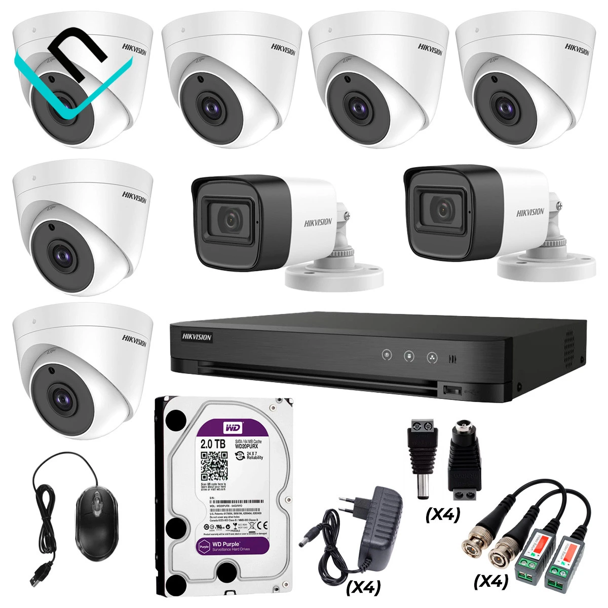 KIT DE 8 CAMARAS HIKVISION 2K, DVR DE 8CH, DISCO DE 2TB Y ACCESORIOS COMPLETOS